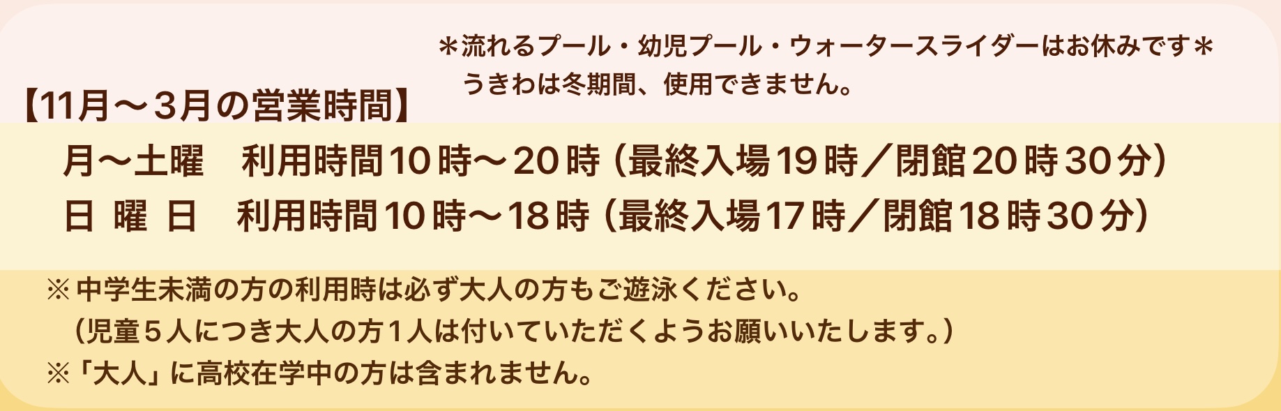 2026.2.28 令和8年度 エンジョイキッズ の日程 2026.2.28 令和8年度 サンデースイミングのお知らせ 2026.2.16 令和8年度9月以降 プール天井 大規模工事のお知らせ もっとみる 2026.1.26 スパール記録会のお知らせ 2025.12.12 年末年始 営業時間の変更と一部休館について 2025.10.25 トレーニングルームの利用制限日について 2025.10.10 冬期間営業について 2025.8.27 令和7年度 エンジョイキッズのお知らせ 2025.8.27 令和7年度 サンデースイミングのお知らせ 2025.8.23 9月・10月の営業について もっとみる 2026年 3月日月火水木金土1234567サンデースイミングエンジョイキッズ891011121314サンデースイミングエンジョイキッズ15161718192021エンジョイキッズ222324252627282930311234エンジョイキッズ NEWT(ニュート) こちらで紹介していただきました海外旅行・国内旅行のツアーやホテル予約はNEWT(ニュート) Tweets by SPALL_tsuruoka