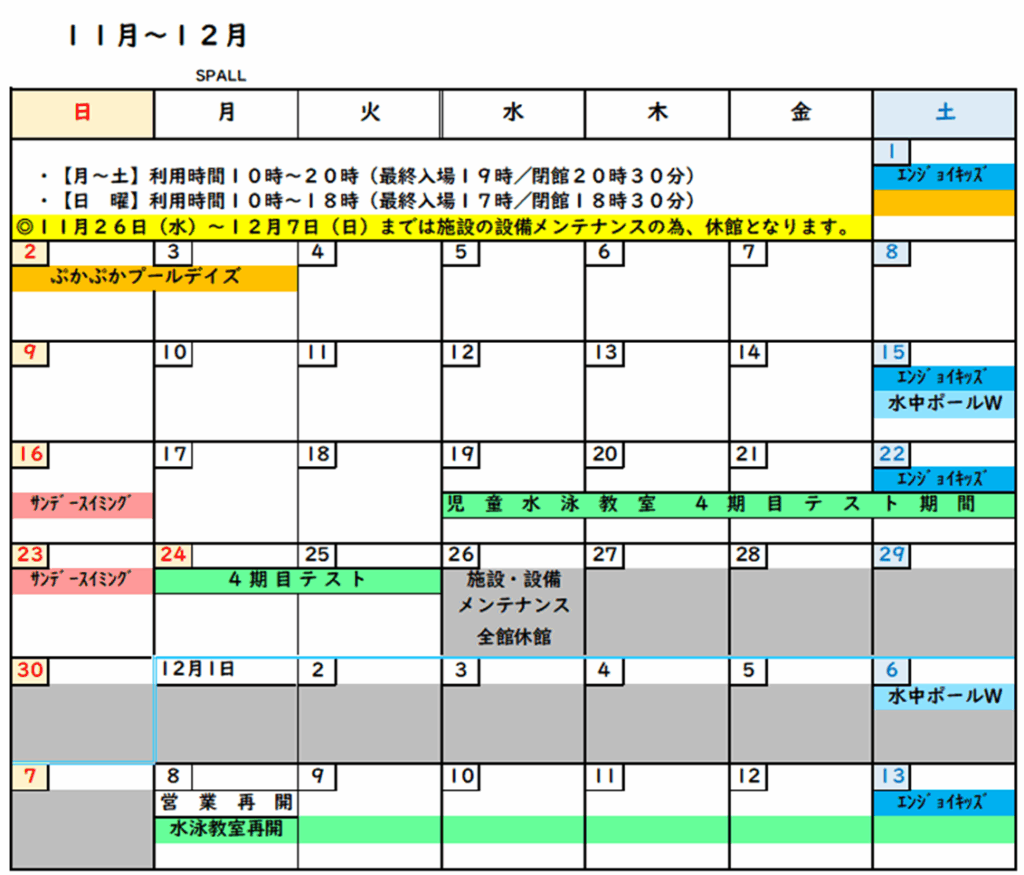 また、11月下旬~ 施設の機械・設備メンテナンスのため